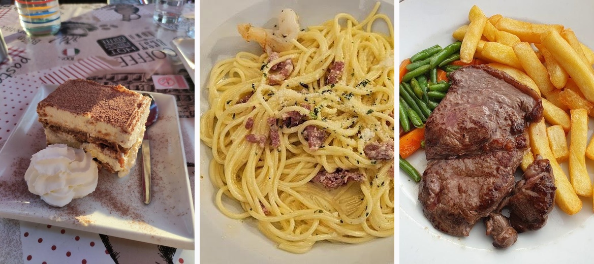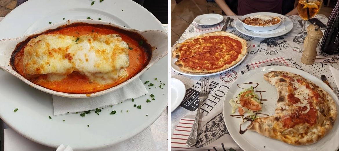 The Trilogy pizza stands out as a must-try, combining pizza, garlic bread, and pasta in one dish. The chicken Caesar salad impresses with its freshness, while classic options like lasagna and spaghetti bolognese never disappoint. Don't overlook the delicious garlic bread either!